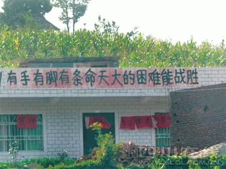 地震重災區(qū)青川縣棗樹村的樸實莊稼漢,面對天災,他們原創(chuàng)的兩條標語“吼”出了精氣神,得到了溫家寶總理的贊譽。昨日,“出自己的力,流自己的汗,自己的事情自己干”、“有手有腳有條命,天大的困難能戰(zhàn)勝”這兩條標語,由青川縣政府捐贈給了地震文物指定征集單位——四川省文物考古研究院。據(jù)該研究院院長高大倫介紹,兩條標語是該院收到的第一份災后重建標語文物,將被永久收藏于地震博物館。