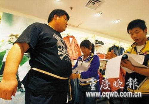 “別人的目光及肥胖帶來的不便,我已經(jīng)習(xí)慣,就是衣服問題成了我最頭疼的事。”王杰郁悶地說,他以前的衣服是在老家找裁縫定做的,來渝只帶了三套單衣褲,這幾天氣溫驟降,他連續(xù)跑了5天,足跡遍及主城各大商圈,但仍未買到一件合適衣服。而以前的秋冬,他都是將買來的特大號秋衣秋褲剪破穿在里面,“可現(xiàn)在我要幫老板跑業(yè)務(wù),衣著太破爛不行。”