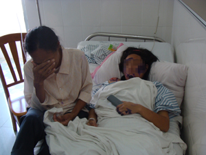 羅梅被送往昌江縣第二人民醫院治療后,一直昏迷不醒。她的家人日夜守候在身邊,心痛萬分,以淚洗面。