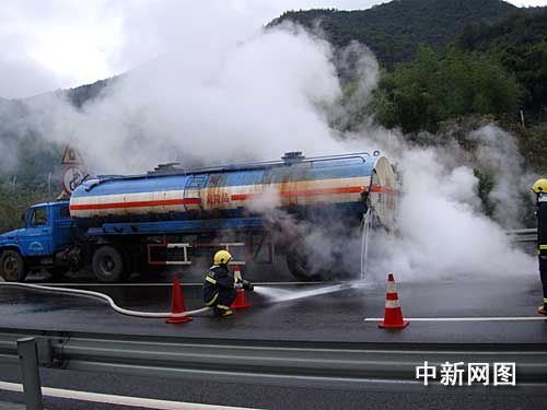 接到報(bào)警后,高速交警寧波支隊(duì)迅速啟動(dòng)應(yīng)急預(yù)案,組織警力以及溪口消防中隊(duì)、奉化市環(huán)保部門、施救單位等相關(guān)部門在第一時(shí)間迅速趕往現(xiàn)場進(jìn)行處置。為了確保安全,高速交警到達(dá)現(xiàn)場后對事故現(xiàn)場進(jìn)行了交通管制,同時(shí)在甬金高速公路往金華方向溪口出口對過往車輛進(jìn)行分流。消防車到達(dá)現(xiàn)場后迅速展開施救,用車上的水和泡沫迅速對泄漏的濃硫酸進(jìn)行稀釋,防止繼續(xù)擴(kuò)散,同時(shí)組織相關(guān)人員對車上剩余的濃硫酸進(jìn)行撥貨處理。經(jīng)過半小時(shí)左右的努力,泄漏的濃硫酸得到了控制,一個(gè)小時(shí)左右之后路面恢復(fù)了正常通行。