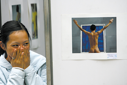 據展覽的主辦者吳俞閑介紹,他們都是廣告攝影專業06級的學生,新學期,他們接觸到了人體藝術這門課程,同學們表現出了極大的熱情,商量著要試拍幾張人體藝術照片。一開始,他們在校園內廣發傳單,希望有志愿者報名當模特,但令他們沒想到的是,幾周下來竟然一個報名的人都沒有。“學生們都不太了解人體藝術!”小吳稱,大家后來一致決定,找不到模特就自己拍自己,而且拍出來的作品要公開展出,讓大家都認識人體藝術的魅力。