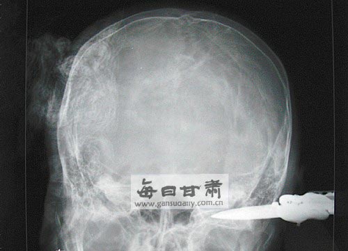 當(dāng)日下午3時,記者在蘭州軍區(qū)蘭州總醫(yī)院安寧分院重癥室看到,受傷的學(xué)生正在搶救中。據(jù)了解,傷者是中午12時許被120急救車送到醫(yī)院的,除頭部受傷外,胳膊也有一處刀傷。經(jīng)檢查,傷者受傷位置是左側(cè)后腦勺,4厘米長的刀刃幾乎全部沒入后腦勺,長約5厘米的刀柄露在腦袋外面。傷者雖神志較為清醒,但隨時有生命危險,需要立即手術(shù)。