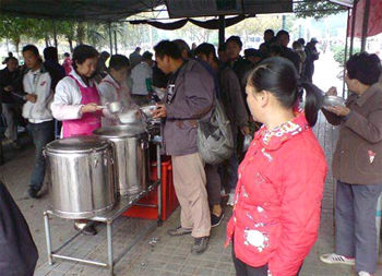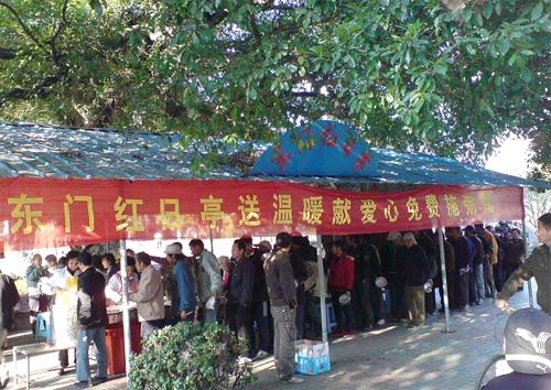這位網友說,當他看到一些明顯是拾荒者和清苦的外來民工模樣的人端著冒著熱氣的粥蹲坐在四周吃的時候,被感動了。