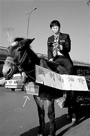 網友“奪命紅燒肉”在網上論壇貼圖介紹,近日,北京北五環的一段公路上,出現一名年輕男子,只見他西裝革履,以騾子為坐騎,行進在來來往往的車流,圖中,這頭騾子的頭上貼著“BMW”標簽,脖子上還掛著巨牛的“車牌”號:馬A88888。