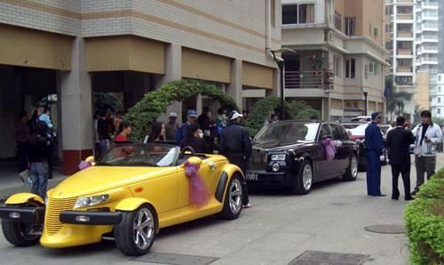 貌似并不高檔的小區(qū)內(nèi),卻出現(xiàn)了超豪華的強悍車隊:“獵獸”開頭,后面跟著三輛“幻影”,以及“賓利”“世爵”等車(如圖)。昨日,一則《福州某集團老總嫁女,豪車云集》的帖子在某網(wǎng)站論壇走紅,該帖描述在福州的碧水芳洲小區(qū),某集團老總嫁女,眾多豪車云集,場面壯觀。眾多網(wǎng)友稱,已被這些豪車震得說不出話來了。(成都晚報)