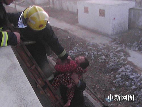 中新網鄭州12月30日電( 記者 朱曉娟 楊朝波) 12月30日上午7時20分左右,鄭州高新技術產業(yè)開發(fā)區(qū)師新莊村一村民別墅樓突發(fā)火災,女主人、3歲的小孩及60多歲的爺爺三人被困樓內,幸被消防官兵及時架梯解救,最終安全逃離火災現場。
