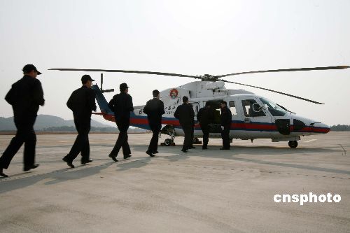 1月19日10時,交通運輸部東海第一救助飛行隊一架S76C+救助直升機,載著浙江海事執法人員從舟山朱家尖機場騰空而起。中新社發 黃正勝 攝