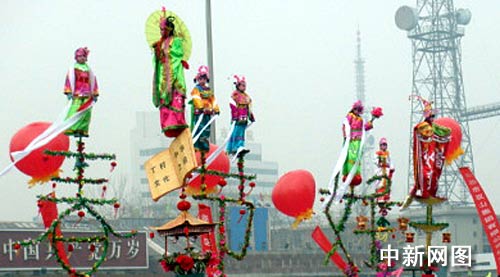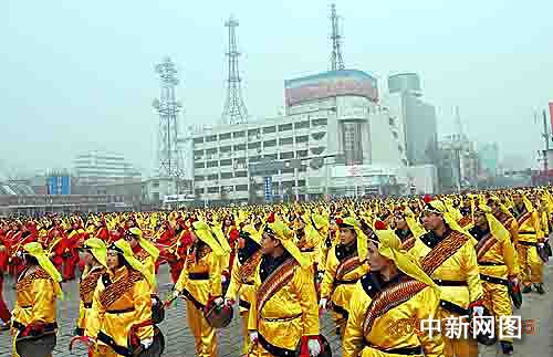 中新網2月9日電(劉一 長年)元宵節當天上午,山西臨汾市平陽廣場熱鬧非凡,2009年元宵節社火表演正在熱烈進行中。