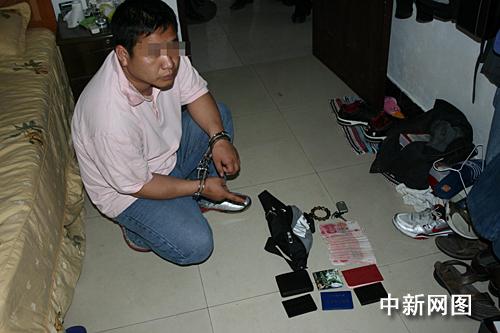 罪嫌疑人在指證搶奪的現金和移動電話等物品。 肖國良 攝影