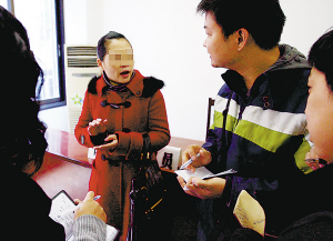 昨日,五中院,林敏(左二)在接受記者的采訪! 本報記者 胡杰 攝