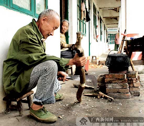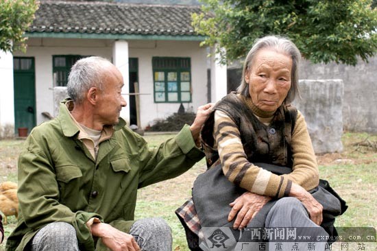 2月22日,在陽朔縣金寶鄉(xiāng)楓木寨村敬老院,記者掏出一張20元面值的人民幣問:“這是多少錢?”58歲的張宗華看了半天,迷茫地?fù)u搖頭:“認(rèn)不得。”此時有人遞給他母親袁淑鈞一支香煙,他立即飛奔回屋,拿了一個打火機(jī)出來,打著火,雙手給母親點上。
