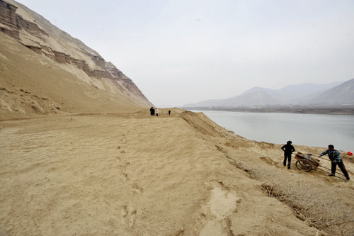 “損失很大,幸虧沒有人員傷亡!爆F(xiàn)場指揮土方清理的鹽鍋峽鎮(zhèn)副鎮(zhèn)長孔繼業(yè)告訴記者,滑坡導(dǎo)致山下的鹽北路近30米長的路面被毀,同時,大量黃土沖入黃河后,河水迅速上漲,導(dǎo)致一河之隔的上車村62畝土地被淹沒,其中冬麥26畝,約2.2畝耕地今年無法耕種,毀壞棗樹83棵,造成經(jīng)濟損失17.3萬元。