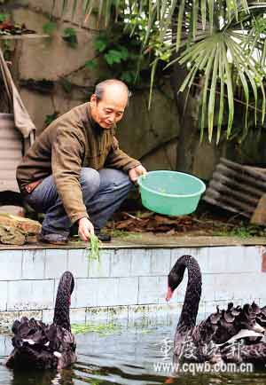 昨日,在北碚區施家梁鎮一院壩中,看著在池塘里悠閑游泳的黑天鵝,55歲的王國華愁眉不展。