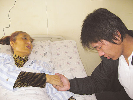 其實,早在2006年,在母親患病中期,兒子常津銘就從網上查到關于肝臟移植手術的資料,但沒想到母親的病真的發展到這一步。當看著往日的漂亮媽媽皮膚黑黃,人也越發消瘦,兒子的心里難受極了。他安慰母親:“老媽,你放心,需要換肝我一定給你!碑敃r,媽媽愣住了:“兒啊,你胡說什么,媽都這么大年紀了,你以后的路還長著呢!”“不行,老媽,我能救你而不救,我會遺憾一輩子的!”