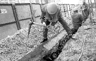 昨日上午,冉屯路清城美苑小區,自來水公司正對該小區庭院管網重新鋪設管道,原因是該小區目前使用的管網由開發商出資鋪設,且沒有經過驗收,入住2年爆管50多次,報修100多次,鋪設的PE管材屬于被禁用產品。