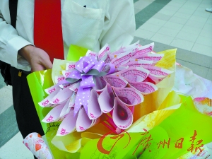 近期廣州高校紛紛舉行畢業典禮,捧束鮮花來合影畢業照是例牌節目。廣州大學生科院的大四學生韋永佳將36張百元人民幣DIY成花束(見下圖),在拍畢業照當天成為全場焦點,但有同學認為這種做法有炫耀之嫌。廣東南方福瑞律師事務所律師曹宇瞳表示,在人民幣管理條例中,故意毀損人民幣;制作、仿制、買賣人民幣圖樣;未經中國人民銀行批準,在宣傳品、出版物或者其他商品上使用人民幣圖樣都是被禁止的,但對人民幣做裝飾品未作具體規定。(記者徐靜 通訊員曾繁瑩攝影報道)