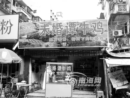 雞飯店在海口隨處可見,可有一家打著“未婚譚牛雞”的小飯店,您恐怕沒見過吧?。