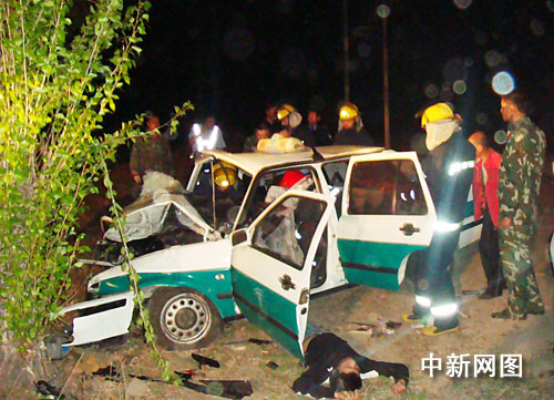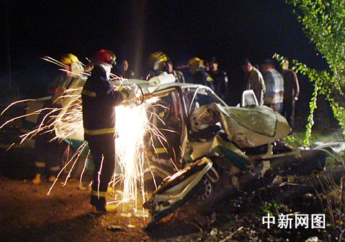 中新網雙鴨山5月12日電 今天凌晨零時40分,在雙鴨山市雙七公路雙富村路段,一輛出租車在行駛途中不慎撞上路旁的一棵大樹上,導致出租車駕駛室嚴重變形,車上7人2死5傷。
