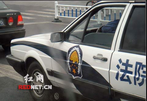 5月20日下午,記者通過帖中所記錄的車牌號,輾轉查到該車屬于江蘇常州市金壇人民法院,通過114,記者再次查到金壇人民法院的電話并拔通了電話,接電話的男子自稱姓翁,負責該法院政工方面的工作,在獲悉記者詢問后,翁先生很友善,稱該車的確是金壇法院的車輛,“其實這車已過了使用年限,早該報廢了,但由于經濟困難一直沒有換新車,我們已向上面申請了,正在等待審批階段!