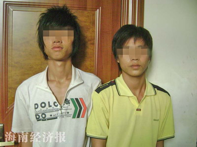 6月23日凌晨2時30分左右,犯罪嫌疑人盧健伙同張發(fā)、阿龍把女孩陳某婷(表姐)和陳某美從三亞河步行橋頭帶到三亞河西區(qū)城市樂園魚塘邊企圖強奸,趁三名犯罪嫌疑人不注意,表姐陳某婷及時穿好衣服跳入三亞河引開三名嫌疑人,表妹陳某美趁勢跳入魚塘順河而上逃脫魔掌。姐姐游泳過河后,及時到三亞市新居派出所報警,民警于當(dāng)晚9時30分抓獲兩名嫌疑人(圖)。