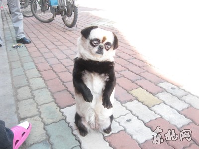 兩只拳頭大小的黑眼圈,短小的黑耳朵,圓圓的臉,肥身體,四肢及胸部為黑顏色,其余毛色均為白色。從遠處慢騰騰的走過來,人們都以為這是一只憨態(tài)可掬的小熊貓。可事實是,這是一只被主人染成熊貓模樣的小狗。