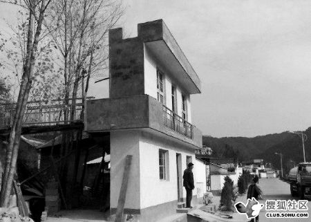 發帖者稱,“在河南省欒川縣叫河鄉,一個建筑格外顯眼,就在公路旁邊,猛一看是兩層小樓,墻壁還刷得白白的,孰不知這棟樓深度只有1.5米左右,為了配合‘新農村建設’建新房,可農民又沒錢蓋‘真樓房’,就只有這樣做了。”