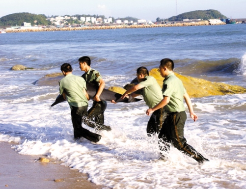 16時40分左右,南澳縣云澳邊防派出所官兵和漁政人員趕到海豚擱淺的云澳赤石灣,只見烈日之下,四只大海豚正拼命用尾鰭拍打沙灘,洶涌的海浪不斷將海豚沖向礁石,致使海豚渾身傷痕累累,情況危急。海豚體長均超過兩米,重逾100公斤,最大的一只體重達300公斤。