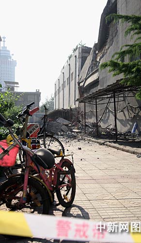 據在現場維持秩序的裕華區政府工作人員介紹,由于要拆遷的河北賓館與住宅樓距離太近,因此無法實行爆破拆除,只有動用大型機械勾機等按部就班地進行拆除。12日上午,河北賓館南側墻體在拆除時,砸落的水泥塊將放置于墻根下的數輛自行車、電動車砸壞,幸未造成人員傷亡。
