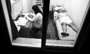 昨日凌晨,北醫三院急診大廳內擠滿了身穿“北京郵電大學”服裝的輸液學生。