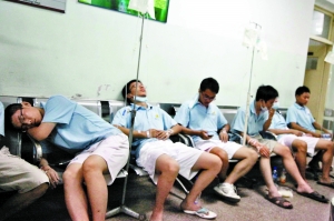 接診的北醫三院證實,此次共接診28名學生。“其中3名學生在搶救室治療。”昨日凌晨,北醫三院急診室醫護人員稱,3名學生送醫院后已經暈倒,不能說話。學生們懷疑是食堂的涼面出現了問題。