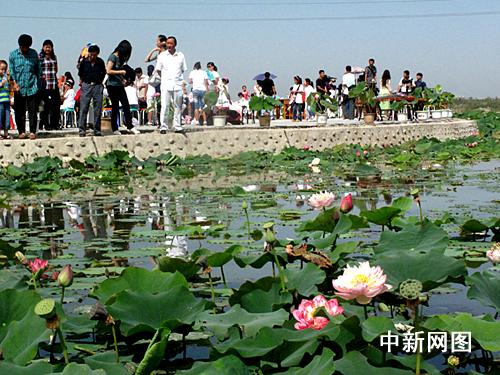 記者24日在青格達(dá)湖濕地看到,這里500畝荷花競相盛開,蔚藍(lán)的17平方公里湖面上多種鳥類翩翩起舞,形成了一幅西域江南水鄉(xiāng)景致,吸引各地游前來客賞花觀鳥。