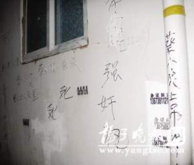 “看見兩個女子趁黑在墻上寫東西,現(xiàn)在看來就是寫這些東西了。”一位目擊者告訴記者,前天晚上,趁著天黑,有兩名女子來到明園這戶居民家門前,開始寫東西,左寫右寫,寫了約摸有十幾分鐘就走了,昨天早上8點多,戶主起床開門后,這才發(fā)現(xiàn)自家墻上及附近低矮的圍擋板上,均有指名道姓的罵人語句。記者看到,從戶主蔡先生家門兩邊向外,以及對門的圍擋板上,留有大黑簽字筆寫下的罵人語句,諸如“蔡某某人渣”、“蔡某某缺德”、“蔡某某強(qiáng)奸犯”等等,還有一些更加不堪入耳辱罵的話,讓人看了瞠目結(jié)舌。粗略數(shù)數(shù),多達(dá)十幾處。
