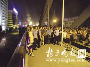 據(jù)悉,這名男子是陜西紫陽人,姓胡,原先在無錫打工,10天前辭職投奔在丹陽做餐飲生意的表哥黃某。也許餐館經(jīng)營不景氣,黃某沒幾天就將其辭退。當(dāng)晚,他拿著結(jié)賬后到手的40元薪水在陵口鎮(zhèn)某網(wǎng)吧過了一夜。5日上午,情緒極其低落的他乘車來到丹陽市區(qū)。傍晚時分,他買了一瓶白酒喝下一半后,爬上云陽大橋的中央拱頂欲跳橋輕生。