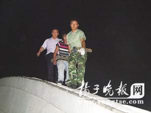 5日傍晚,一名年輕的陜西小伙,因?yàn)楣ぷ鞅晦o,情緒低落,居然喝了半斤白酒,爬上高達(dá)20多米的丹陽市云陽大橋拱頂準(zhǔn)備輕生。為此,300多名公安消防人員聯(lián)手展開3個多小時的水陸大營救。中山路派出所所長朱文俊帶著幾名警察和消防隊(duì)員冒著生命危險,爬到橋頂,并在危急時刻死死抱住該男子的雙腿,終于將該男子成功解救下來。昨日,該男子已被警方治安拘留。