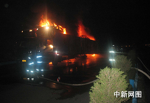中新網宜昌10月2日電(郭曉瑩 王申)10月1日晚22時許,一輛裝載有16輛轎車的重慶籍貨車在漢宜高速宜昌方向280公里處起火。貨車上所載16輛轎車全部報廢,損失高達一百多萬元,所幸未造成人員傷亡。