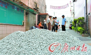 昨天早上7時(shí),家住順德區(qū)容桂恒順閣小區(qū)的桂婆拄著拐杖去買菜,剛走到小區(qū)門口時(shí)就愣住了:狹窄的小道被一堆1米來高的碎石堵得嚴(yán)嚴(yán)實(shí)實(shí)。該小區(qū)50多戶居民只好在碎石邊鏟出一條小道,但是小區(qū)內(nèi)仍有多輛私家車受堵開不出去。