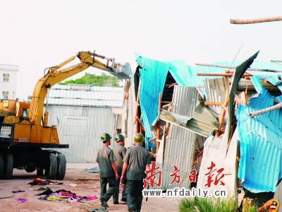 昨日,在繼近兩年來近百次的打擊走私舊服裝的行動后,陸豐市出動800多公安、工商、城管等警力、人力,對位于碣石鎮新繞村的“洋垃圾”窩藏點的288間鐵皮房進行定點清除。