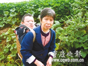 一位65歲的母親,用她柔弱的肩膀,背著兒子生活已經30年。