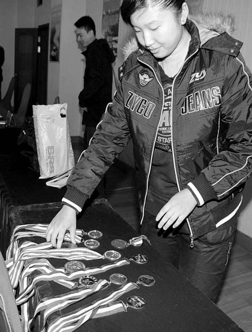 這位叫曹莉燁的女孩告訴記者,自己7歲習武,畢業后一直參加集訓和比賽,因此才在畢業的第二年來報名。當記者詢問她曾參加過什么比賽時,她拿出了十多塊金牌。