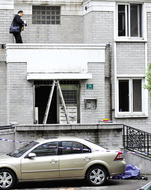 這對夫妻住在文化花園36號樓3樓。據樓下鄰居說,從昨天晚上到今天清晨,夫妻倆爭吵了一整夜,“一直聽到他們家傳出乒乒乓乓的聲音”,甚至還驚動了派出所。今晨6時許,有人聽到一聲悶響,探頭一看,發現丈夫躺在36號樓門口的自行車道上,身體彎成弓形,頭上一個大窟窿慢慢滲出鮮血。目擊者立即報警,110趕來后去現場了解情況,這才發現妻子在屋內也已身亡,而20個月大的兒子就在一旁。