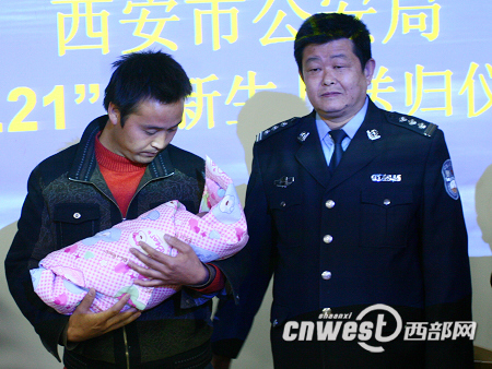 備受公眾關(guān)注的西安交大一附院丟失女嬰今天終于回到了父親嚴(yán)小紅的懷抱。今天(12月2日)下午西安市公安局專門舉行送歸儀式將女嬰交給他的父親嚴(yán)小紅,西安市公安局通過DNA鑒定,確定女嬰為嚴(yán)小紅和張?zhí)m芳的親生女兒。