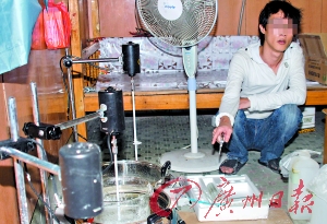 7月初,江門警方將“地主”販賣毒品的線索轉給佛山市公安局刑警支隊,但“地主”聞風潛伏,停止了制販毒活動。專案民警經過近4個月的深入摸查,發現該團伙不但販賣毒品,還利用家庭式作坊從事制造毒品活動。