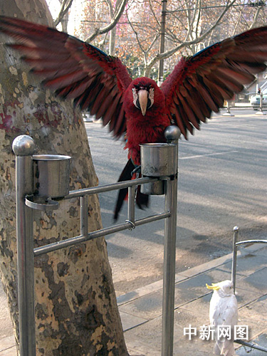 這道“紅金剛風(fēng)景線”,在人民路上已存在了多年,引得無數(shù)路人觀賞贊嘆。據(jù)“紅金剛”的主人郭經(jīng)理介紹,“鸚鵡之王”已跟隨他五、六年了,是從國外進(jìn)口的,很乖巧。當(dāng)時(shí)引進(jìn)時(shí)近三萬元一只。(完)