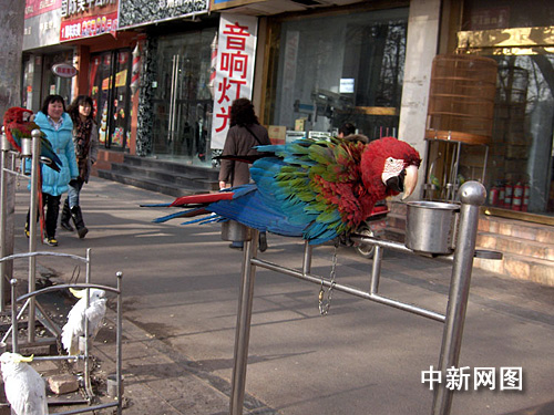 中新網(wǎng)鄭州1月27日電(記者 李朝棟)“學(xué)學(xué)孔雀表表愛”,鄭州市人民路上有一只名叫“紅金剛”的“鸚鵡之王”,每日“開屏”多次,令無數(shù)路人駐足觀賞。
