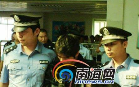 3月3日上午,胡某、胡某某、齊某三名犯罪嫌疑人被押解回海口(楊某已在前段時間押回海口),其中一名犯罪嫌疑人低著頭說“我很后悔”。