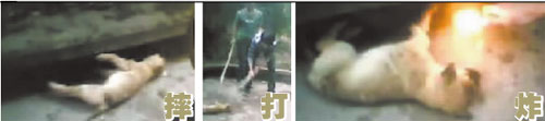 抓住小狗,把它從約2米高的階梯上用力摔下,一聲慘叫后,小狗動彈不得;隨后,一名穿綠衣的男孩和一個穿橫條紋T恤的男孩將鞭炮塞進已經奄奄一息的小狗的嘴里和耳朵里炸;兩人還手持木棍對著小狗一頓亂打……這不是恐怖電影,而是發生在宜賓街頭的一起虐待流浪狗事件。