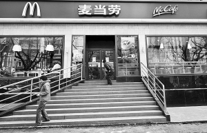 記者于上午8時多趕到現場,事發的這家麥當勞已被封鎖。門前臺階上,站著六七名身著便裝但神情嚴肅的男女,警惕地看著過往行人。見記者靠近,一名自稱是餐廳員工的男士過來阻攔:“今天設備壞了,不營業!痹谒闹更c下,記者看到玻璃門上貼著一張白紙:因內部設備故障,今天暫停營業。透過窗戶望進去,店里有數人,正在急匆匆交談。記者試著探聽凌晨發生的命案,門口的員工一律回復“不知道”“沒聽說”。