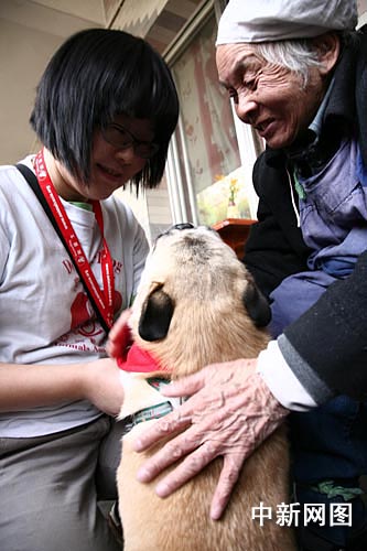 成都“狗醫生”項目主管鄧軼丹介紹說,“狗醫生”項目一方面提高大家對動物福利重要性的認識,另一方面也給在心理上需要得到幫助的人們帶來溫暖。定期地赴老人院進行探訪,通過我們之間的一些聊天,在我們走了之后他們也會有一些閑談,使得他們的生活更加充實。