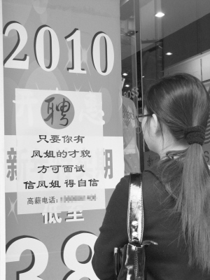 昨天下午,記者來到湖濱南路新村站,找到了掛出“雷人”招聘廣告的店。這是一家男裝店,營業員告訴記者,招聘廣告是老板做的,而老板此時在非礦的另一家店里。記者來到非礦的那家店后,看到該店門口也貼著一張招聘啟事,仍然留著老板的電話,不過沒有新村那家店的關于“鳳姐”的廣告詞。