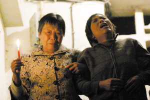 昨天晚上9點45分,死者張某的家人們依然留在樓道內,把點燃的蠟燭安放在6樓至1樓間的走道上。家人們說,晚上把蠟燭點在樓道上,是想讓逝者“平安下樓”。